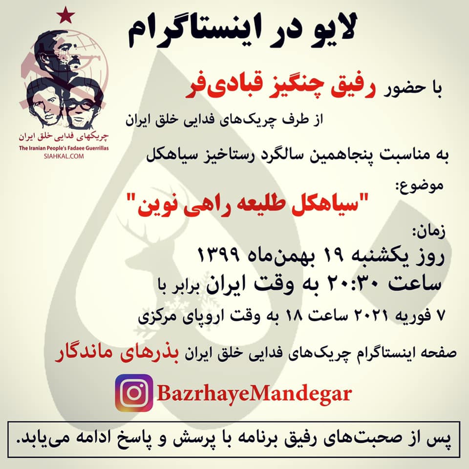 پخش برنامه زنده در اینستاگرام با حضور رفیق چنگیز قبادی‌فر از طرف چریکهای فدایی خلق ایران به مناسبت پنجاهمین سالگرد رستاخیز سیاهکل